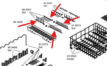 סט 2 זוגות מחזיקי מעמד צלחות וסירים מקורי לסלסלה עליונה למדיח כלים בוש 00489467