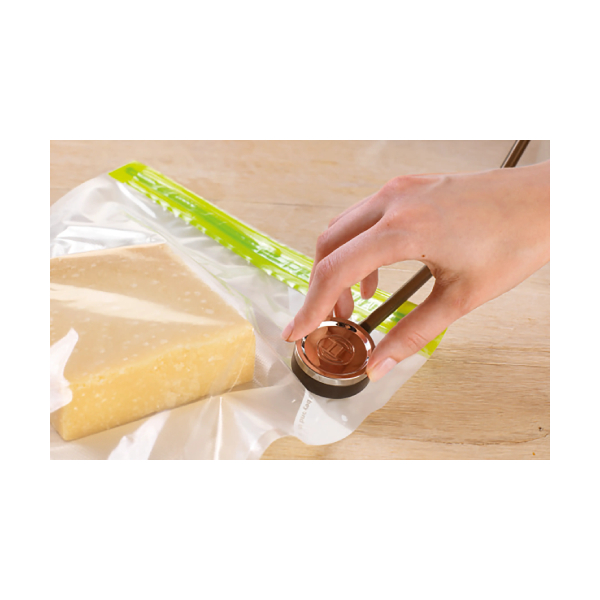 חומר רב-שכבתי עם תעלות אוויר – המרקם המיוחד על פני השקית לא מקרי. הוא מאפשר לאוויר לנסוע לאורך כל השקית עד לשסתום, גם כשהשקית מלאה בנתח גדול ולחוץ. תוצאה: ואקום מלא גם בנתח של קילו וחצי.