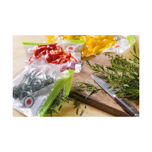 זיפ כפול בפתח רחב – הפתח רחב מספיק להכנסת נתחים גדולים ללא מאמץ. הזיפ הכפול מבטיח שאיבת ואקום מדויקת ומונע חדירת אוויר חזרה.